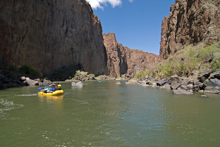 The flotilla of six rafts and two kayaks had beached briefly alongside a narrowing stretch of the Owyhee Gorge while one of the yellow vested guides climbed boulders to scout the rapids ahead. The last raft was short an opportunistic young woman who had scampered out of reach, unable to resist the temptation of small animal life along the shore. After passing the water bugs she then moved upslope to victoriously display a garter snake.